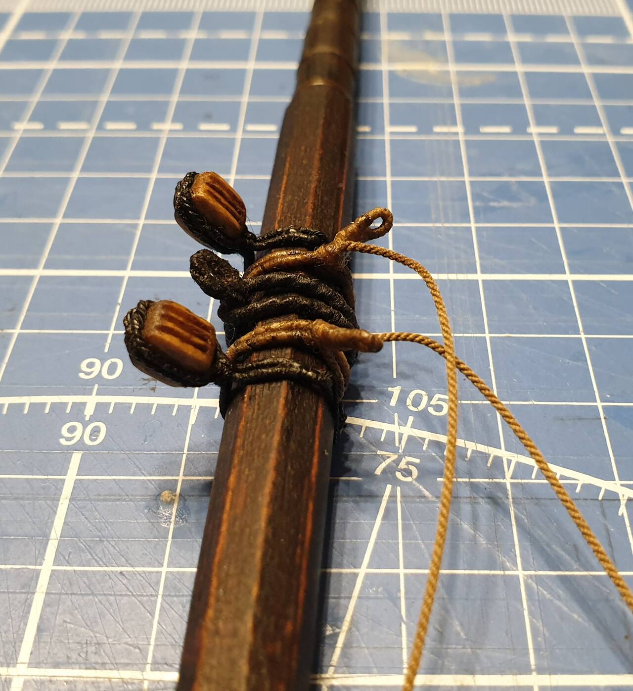 Производитель под цифрой 2 на фото назвал деталь как усилительный элемент. Хотя это видимая часть третьей палубы на которой будет расположен трап ведущий на вторую палубу. По этому на этой детали решил имитировать часть палубы.