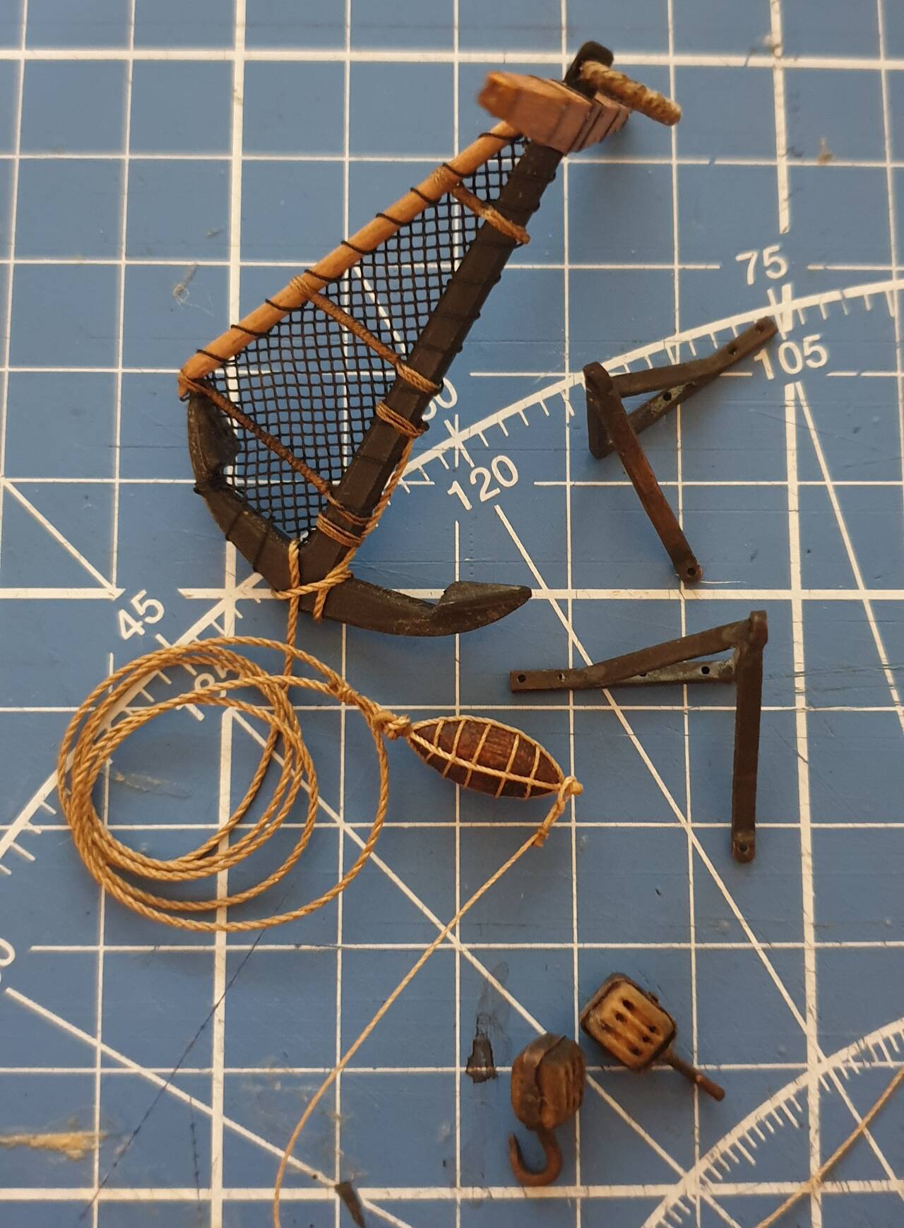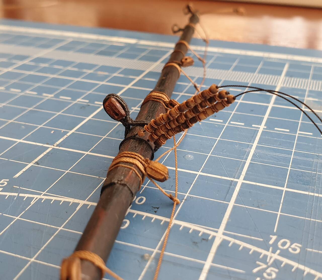 Производитель под цифрой 2 на фото назвал деталь как усилительный элемент. Хотя это видимая часть третьей палубы на которой будет расположен трап ведущий на вторую палубу. По этому на этой детали решил имитировать часть палубы.