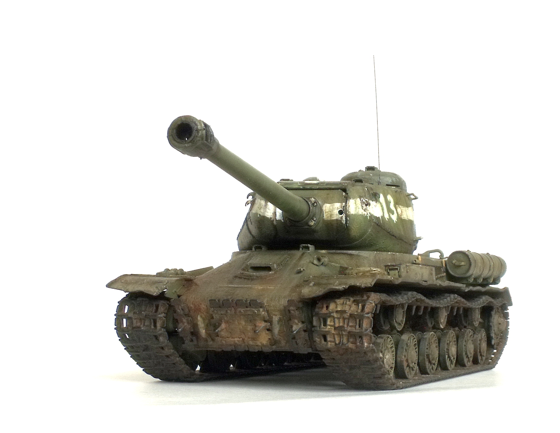 Здравствуйте. Хочу показать еще одну свою работу, ИС-2 от Тамии. Собирал ориентируясь на фронтовое фото. О модели сказать нечего...Тамия есть Тамия! Использован металлический ствол со смоляным дульным тормозом и смоляная маска. Окрашен 4БО от ARM PNT. Везеринг жижи от Мига.