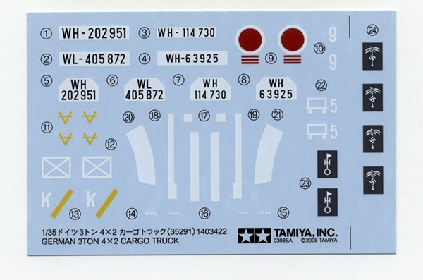 Decals - ( Tamiya Kit No.35291, Opel 3 Ton 4x2 Cargo Truck) - 5$.