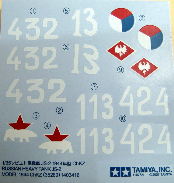 Decals - ( Tamiya Kit No.35298, Russian JS-2 Model 1944 ChKZ) - 5$.